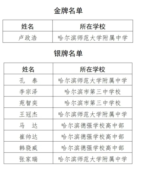 (哈师大附中卢政浩获得决赛金牌,进入国家集训队)