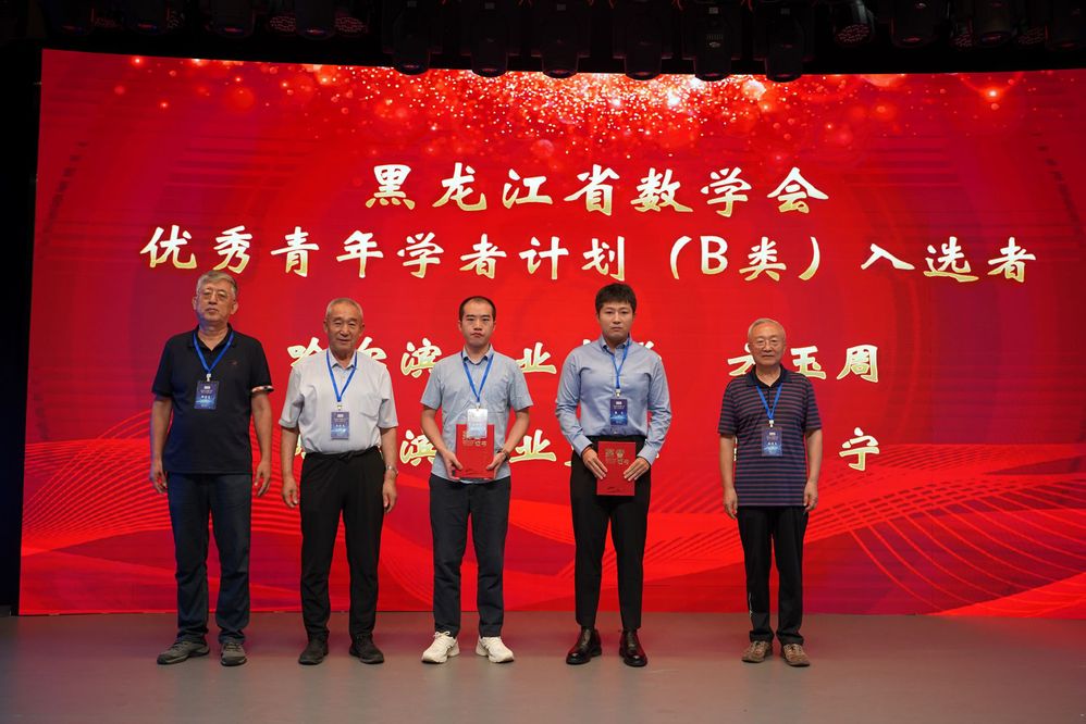 黑龙江省数学会会士哈尔滨师范大学王玉文教授、哈尔滨工业大学魏俊杰教授、哈尔滨工业大学郑宝东教授为优秀青年学者计划B类入选者方玉周、郭宁颁发证书